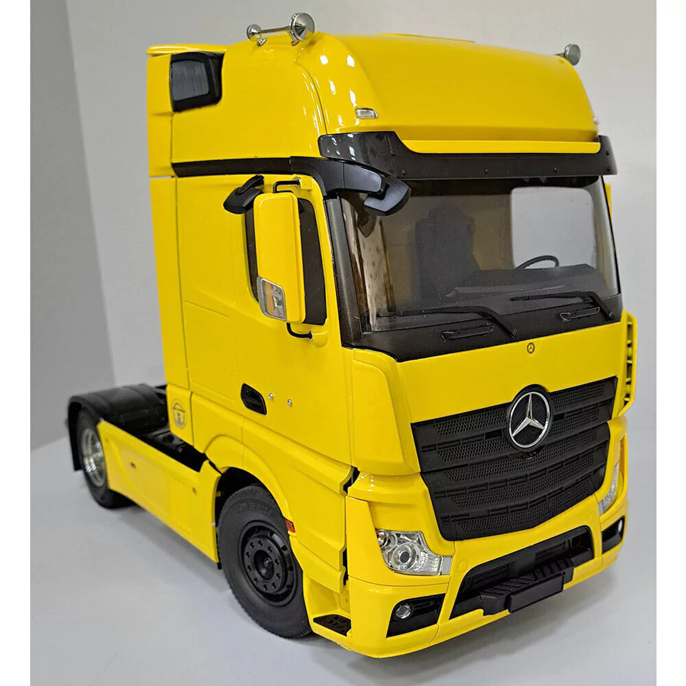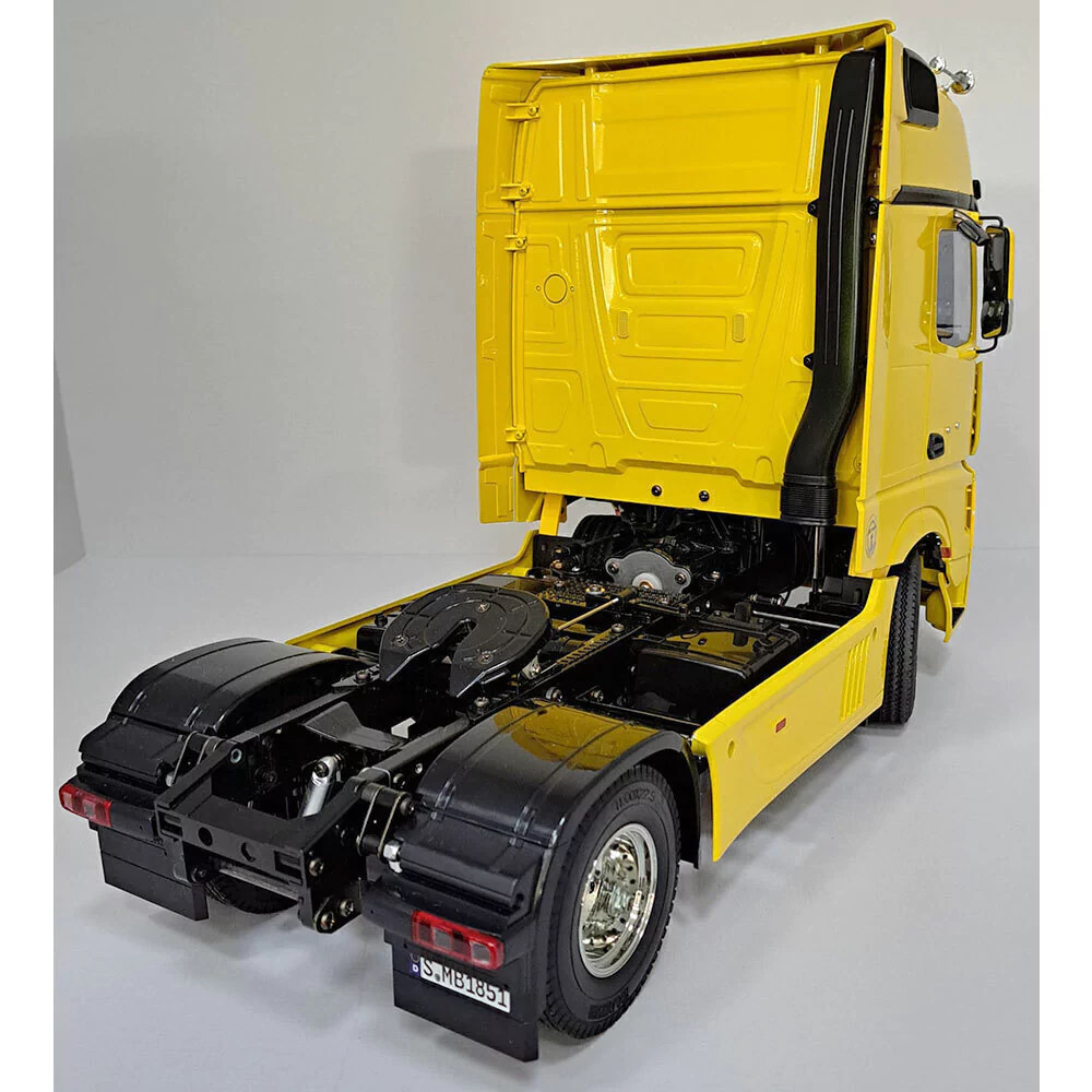 [Um caminhão de reboque voltado para uma nova era com um estilo digno digno de um campeão] Daimler, empresa alemã conhecida como a maior fabricante de caminhões do mundo.Depois de passar por uma mudança completa de modelo em junho de 2011, tornou-se o Caminhão do Ano ・Este é um kit de montagem de carro RC elétrico para o Actros 1851 Giga Space, um modelo de tração traseira de eixo único equipado com um motor turbo de seis cilindros em linha de 12,8 litros que possui 510 cavalos de potência do carro-chefe premiado da empresa em 2012 ". Actros". A forma poderosa da cabine é modelada de forma realista usando moldes de precisão, e vários equipamentos auxiliares, como o tanque de ar, também são reproduzidos. Além das peças folheadas, são utilizadas marcas de entrada no emblema, etc., dando uma sensação de escala.É atraente.O chassi usa uma estrutura de escada que combina trilhos laterais de canal de alumínio com uma travessa de resina.O motor é montado no eixo dianteiro e a potência é transmitida da transmissão para o eixo traseiro através do eixo da hélice. uma engrenagem diferencial integrada para criar um desempenho suave nas curvas. Além disso, a transmissão de 3 velocidades montada permite que você aproveite a mudança de marcha enquanto dirige com operação RC. o comprimento total é de aproximadamente 1m. É impressionante de se ver e divertido de operar