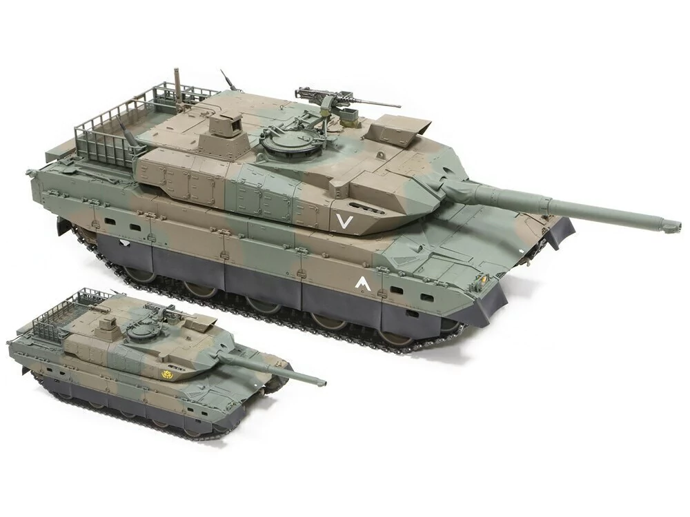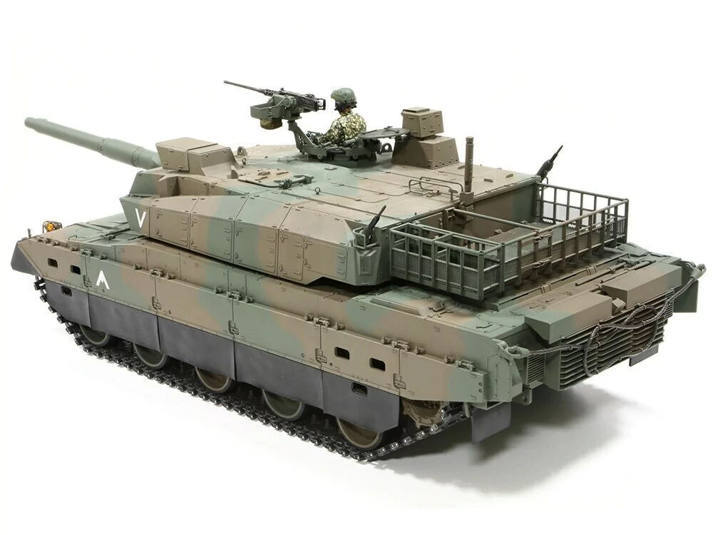 Este é um kit de montagem de modelo de plástico que reproduz o tanque Tipo 10 (Hitomaru Shiki) da Força de Autodefesa Terrestre, que foi oficialmente adotado em 2010, em escala 1/16. Com a total cooperação da Força de Autodefesa Terrestre, realizamos uma cobertura completa do veículo real e modelamos de forma realista um corpo fino com um canhão de tanque de 120 mm e blindagem inclinada. A torre de estilo moderno é fielmente reproduzida com armadura modular. Os detalhes de cada parte da carroceria e o padrão antiderrapante também são delicados. A arma principal é uma combinação de peças de alumínio usinadas e peças de resina. Resina macia é usada para a saia lateral. As trilhas conectadas a resina usam pinos de metal e conectores fundidos para garantir a resistência. Além disso, as peças de metal são usadas para o chassi, roda dentada e braço de suspensão para suportar com segurança os modelos de serviço pesado. Uma imagem de meio corpo do comandante do tanque que aumenta o realismo. Com 3 tipos de marcações: 1º Corpo de Educação Blindado 2º Veículo de afiliação do Esquadrão de Educação do Sargento Terrestre, 2ª Divisão 2º Regimento de Tanques 4º Veículo de afiliação do Esquadrão de Tanques, Veículo de afiliação do Corpo de Orientação de Tanques Fuji Guidance Corps 1º Esquadrão de Tanques.