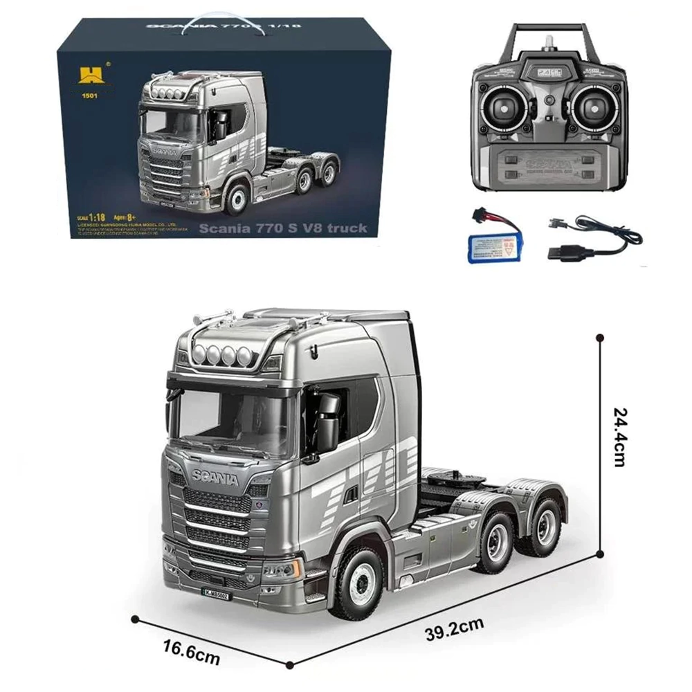 Apresentamos um impressionante caminhão reboque escala 1/18, inspirado no poderoso modelo 770S na configuração 6x4. Desenvolvido para entusiastas de miniaturas realistas e veículos de engenharia pesada, este modelo combina detalhes autênticos com recursos eletrônicos avançados.