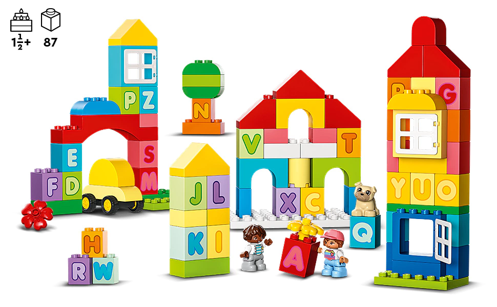 Os pequenos iniciam seus primeiros passos na criação de palavras com este brinquedo de construção colorido e criativo. Este conjunto inclui todas as letras do alfabeto, ajudando as pequenas crianças a reconhecerem as letras, explorarem formas interessantes e entenderem o significado de posições, como “embaixo” e “acima”, “aberto” e “fechado”.