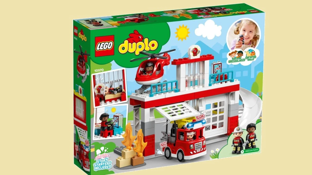 -Quartel dos Bombeiros movimentado – O LEGO® DUPLO® Resgate Quartel dos Bombeiros e Helicóptero (10970) está repleto de personagens amigáveis, atividades divertidas e muitas oportunidades para dramatizações de desenvolvimento