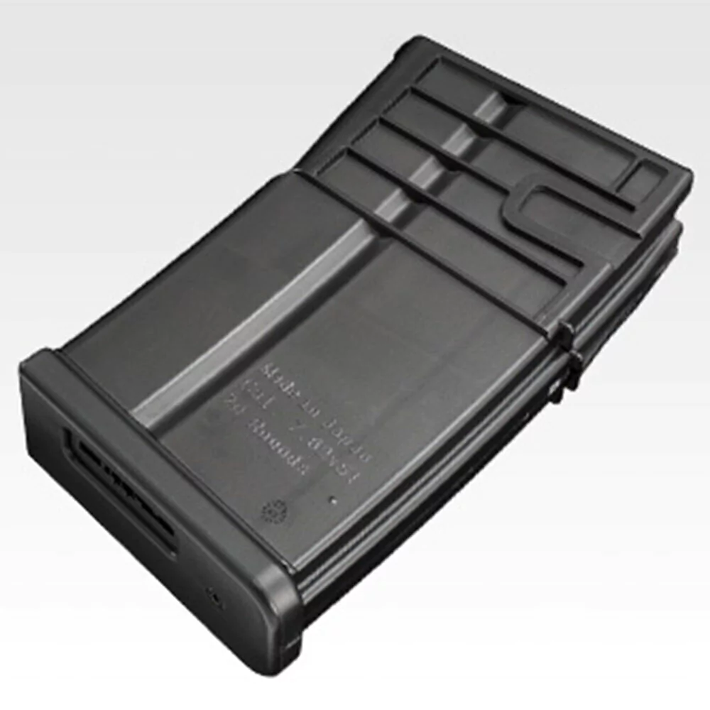 Magazine Transparente Realista. Ele vem com um carregador transparente que reproduz a bala de 7,62x51mm dentro com 70 cartuchos e a transparência da bala interna de 7,62x51mm.