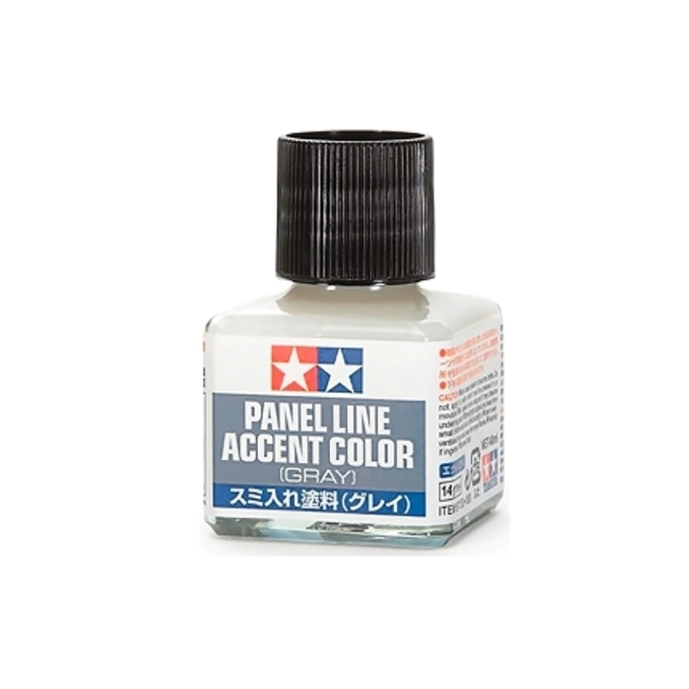 Tintas esmalte Tamiya linha de painéis são ideais para realçar as linhas do painel e outros detalhes para dar ao seu modelo uma profundidade mais realista. A tinta é pré-diluído na viscosidade ideal e pode ser facilmente aplicado em fendas, tais como linhas de painel com a escova sobre a tampa do frasco. Uma vez seco, o excesso pode ser limpo usando esmalte mais fino.